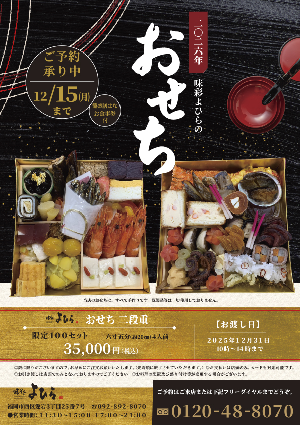新春の食卓を華やかに彩ります。2026年おせちのお知らせ。